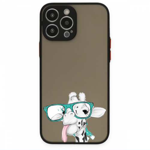 Apple iPhone 13 Pro Şımarık Zürafa Siyah Hux Telefon Kılıfı