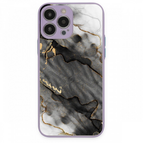 Apple iPhone 13 Pro Max Siyah Altın2 Lila Hux Telefon Kılıfı