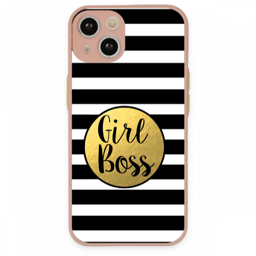 Apple iPhone 13 Mini Siyah Beyaz Girl Boss Pembe Hux Telefon Kılıfı