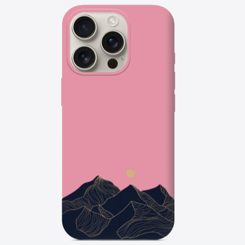 Apple iPhone 16 Pro Siyah Dağ Pembe Renkli Silikon Telefon Kılıfı