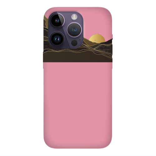 Apple iPhone 14 Pro Siyah Dağ2 Pembe Renkli Silikon Telefon Kılıfı