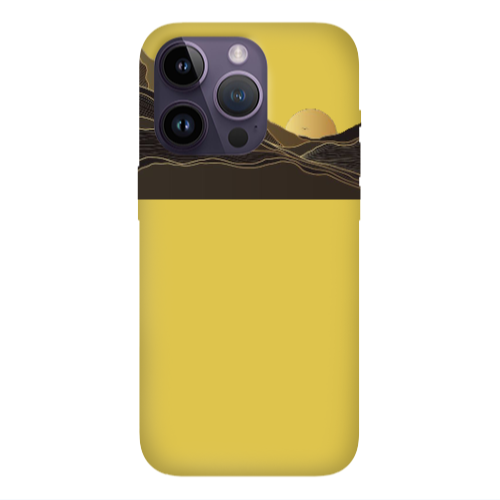 Apple iPhone 14 Pro Max Siyah Dağ2 Sarı Renkli Silikon Telefon Kılıfı