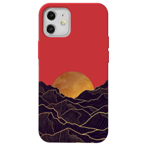 Apple iPhone 12 Siyah Dağ3 Kırmızı Renkli Silikon Telefon Kılıfı