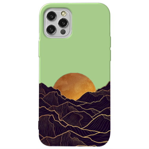 Apple iPhone 13 Pro Siyah Dağ3 Açık Yeşil Renkli Silikon Telefon Kılıfı