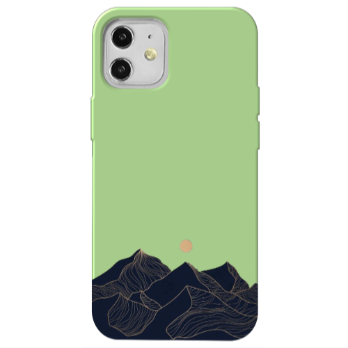 Apple iPhone 12 Siyah Dağ Açık Yeşil Renkli Silikon Telefon Kılıfı