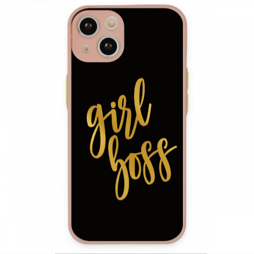 Apple iPhone 13 Mini Siyah Girl Boss Pembe Hux Telefon Kılıfı