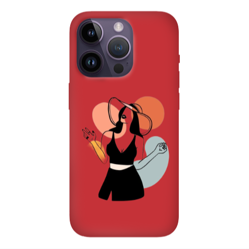 Apple iPhone 14 Pro Max Siyah Kadın2 Kırmızı Renkli Silikon Telefon Kılıfı