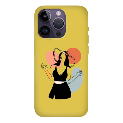 Apple iPhone 14 Pro Max Siyah Kadın2 Sarı Renkli Silikon Telefon Kılıfı