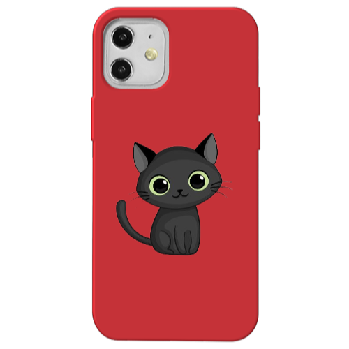 Apple iPhone 12 Mini Siyah Kedi Kırmızı Renkli Silikon Telefon Kılıfı