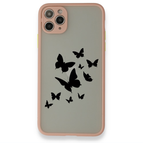 Apple iPhone 12 Pro Siyah Kelebek Pembe Hux Telefon Kılıfı