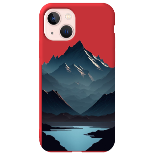 Apple iPhone 13 Soluk Mavi Kırmızı Renkli Silikon Telefon Kılıfı