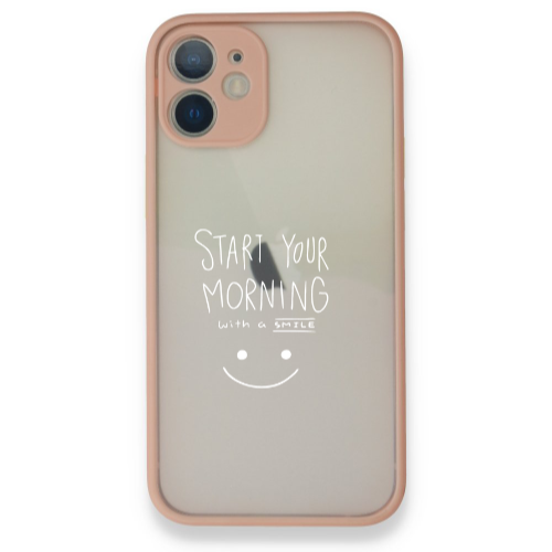 Apple iPhone 12 Mini Start Your Morning Pembe Hux Telefon Kılıfı