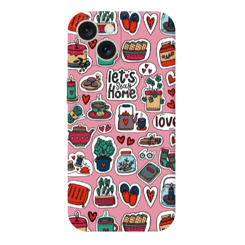 Apple iPhone 15 Stay Home Pembe Renkli Silikon Telefon Kılıfı