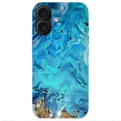 Apple iPhone 16 Sulu Mavi Sarı Renkli Silikon Telefon Kılıfı