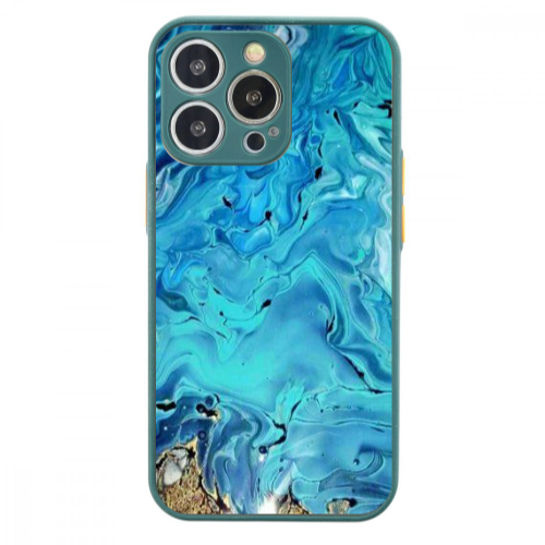 Apple iPhone 14 Pro Sulu Mavi Koyu Yeşil Hux Telefon Kılıfı