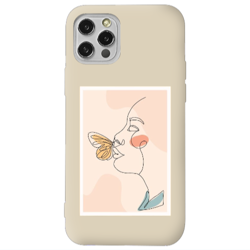 Apple iPhone 12 Pro Max Tablo Krem Renkli Silikon Telefon Kılıfı