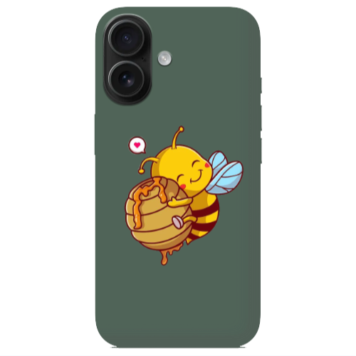 Apple iPhone 16 Tatlı Arı Koyu Yeşil Renkli Silikon Telefon Kılıfı