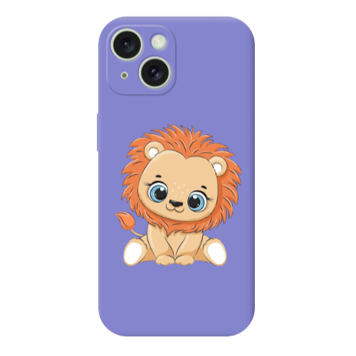 Apple iPhone 15 Plus Tatlı Aslan Lila Renkli Silikon Telefon Kılıfı