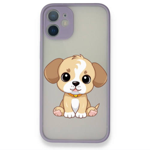 Apple iPhone 12 Mini Tatlı Köpek Lila Hux Telefon Kılıfı