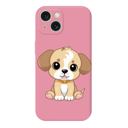 Apple iPhone 15 Plus Tatlı Köpek Pembe Renkli Silikon Telefon Kılıfı