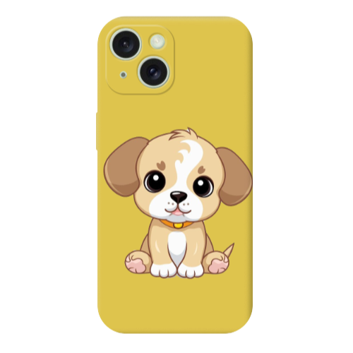 Apple iPhone 15 Plus Tatlı Köpek Sarı Renkli Silikon Telefon Kılıfı