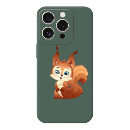 Apple iPhone 15 Pro Tatlı Sincap Koyu Yeşil Renkli Silikon Telefon Kılıfı