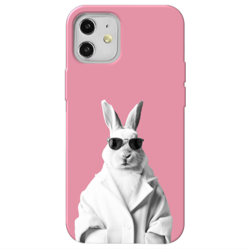 Apple iPhone 12 Tavşan Bey Pembe Renkli Silikon Telefon Kılıfı