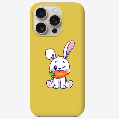 Apple iPhone 16 Pro Tavşan2 Sarı Renkli Silikon Telefon Kılıfı