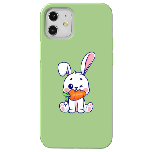 Apple iPhone 12 Mini Tavşan2 Açık Yeşil Renkli Silikon Telefon Kılıfı