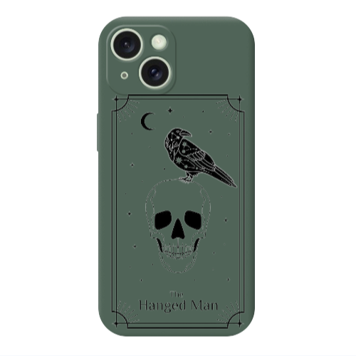 Apple iPhone 15 Plus The Hanged Man Koyu Yeşil Renkli Silikon Telefon Kılıfı