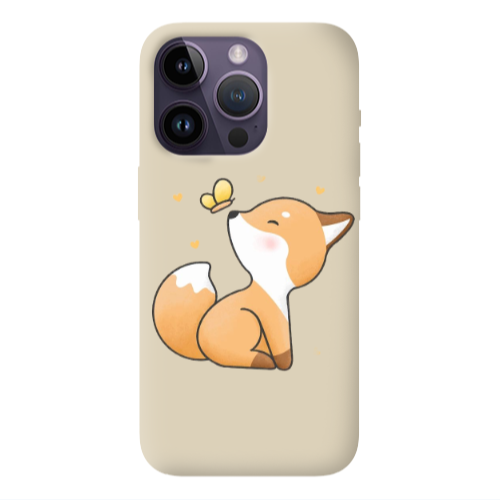 Apple iPhone 14 Pro Tilki Öpücüğü Krem Renkli Silikon Telefon Kılıfı