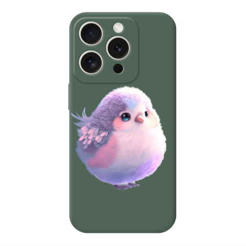 Apple iPhone 15 Pro Tombik Kuş Koyu Yeşil Renkli Silikon Telefon Kılıfı
