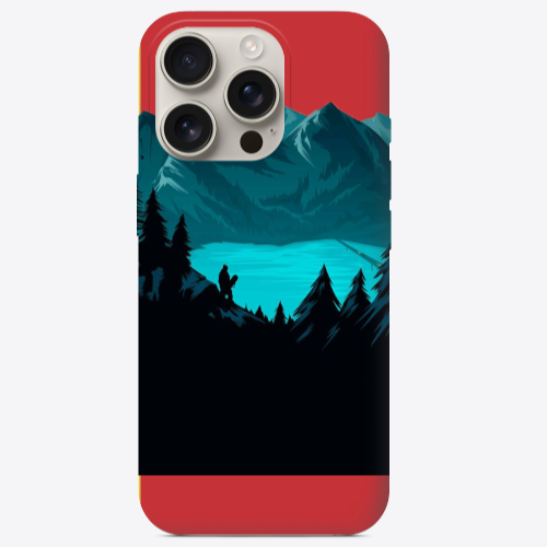 Apple iPhone 16 Pro Turkuaz Dağ Kırmızı Renkli Silikon Telefon Kılıfı
