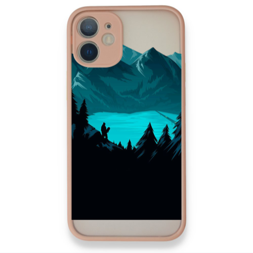 Apple iPhone 11 Pro Max Turkuaz Dağ Pembe Hux Telefon Kılıfı
