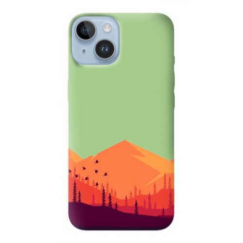Apple iPhone 14 Turuncu Dağ2 Açık Yeşil Renkli Silikon Telefon Kılıfı