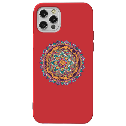 Apple iPhone 13 Pro Turuncu Mandala Kırmızı Renkli Silikon Telefon Kılıfı