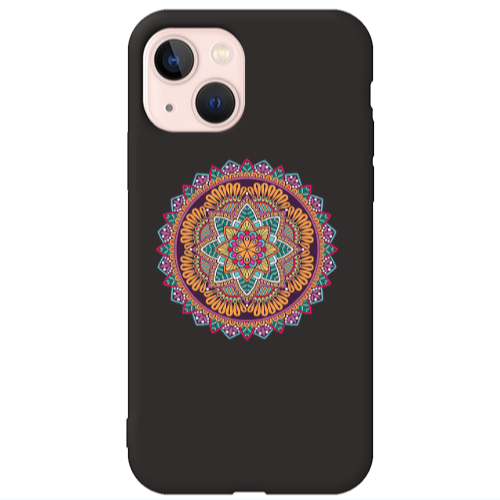 Apple iPhone 13 Mini Turuncu Mandala Siyah Renkli Silikon Telefon Kılıfı