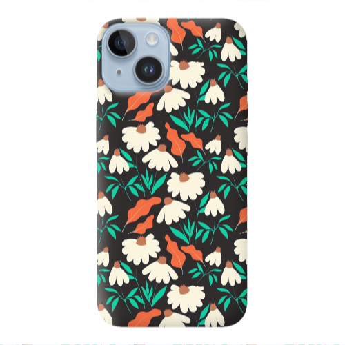 Apple iPhone 14 Plus Turuncu Yaprak Siyah Renkli Silikon Telefon Kılıfı