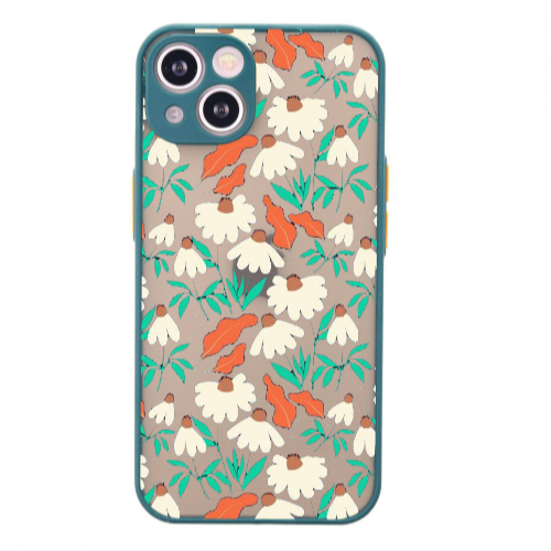 Apple iPhone 13 Mini Turuncu Yaprak Koyu Yeşil Hux Telefon Kılıfı