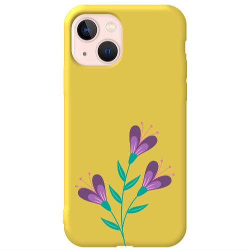 Apple iPhone 13 Mini Üçlü Çiçek Sarı Renkli Silikon Telefon Kılıfı
