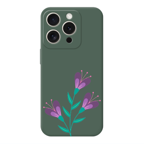 Apple iPhone 15 Pro Üçlü Çiçek Koyu Yeşil Renkli Silikon Telefon Kılıfı