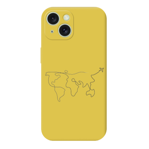 Apple iPhone 15 Uçuş Rotası Sarı Renkli Silikon Telefon Kılıfı