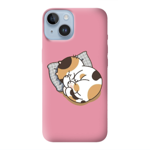 Apple iPhone 14 Plus Uykucu Kedi Pembe Renkli Silikon Telefon Kılıfı