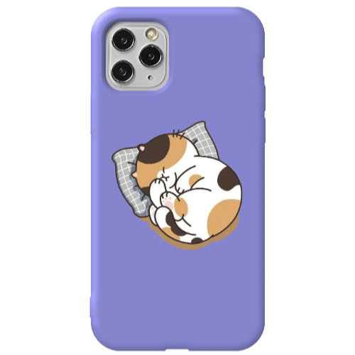 Apple iPhone 11 Pro Max Uykucu Kedi Lila Renkli Silikon Telefon Kılıfı
