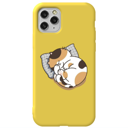 Apple iPhone 11 Pro Max Uykucu Kedi Sarı Renkli Silikon Telefon Kılıfı