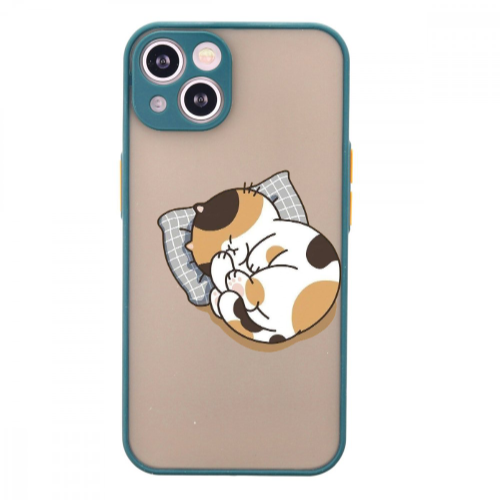 Apple iPhone 13 Mini Uykucu Kedi Koyu Yeşil Hux Telefon Kılıfı