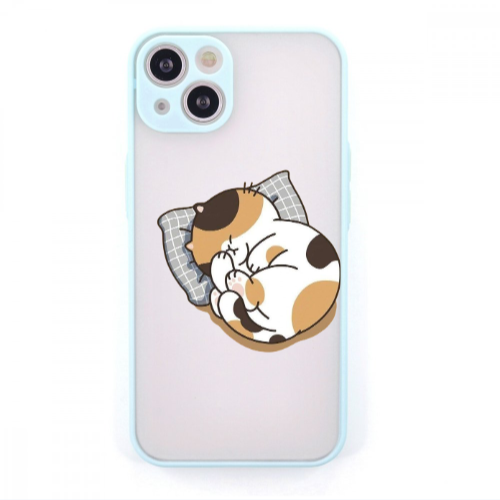 Apple iPhone 13 Mini Uykucu Kedi Turkuaz Hux Telefon Kılıfı