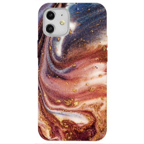 Apple iPhone 12 Uzay Mermer Lila Renkli Silikon Telefon Kılıfı