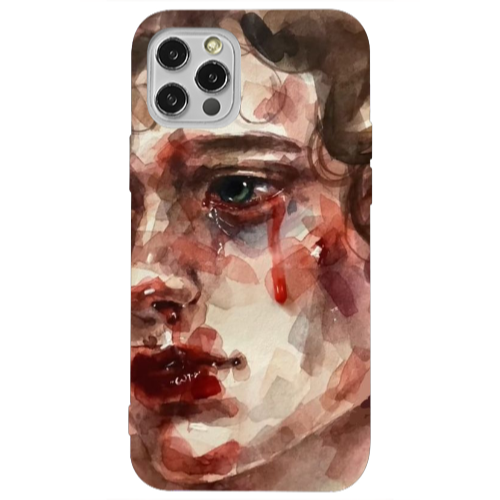 Apple iPhone 12 Pro Max Üzgün Kadın Siyah Renkli Silikon Telefon Kılıfı