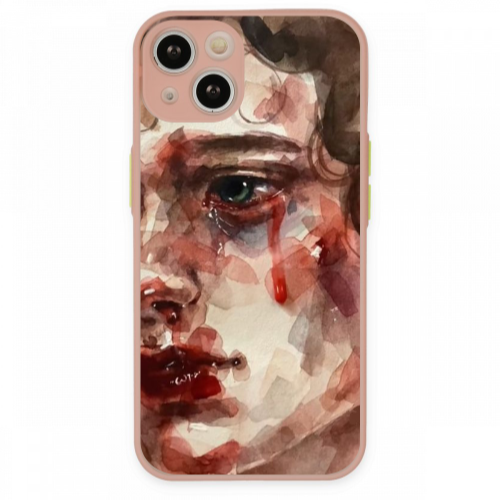 Apple iPhone 13 Mini Üzgün Kadın Pembe Hux Telefon Kılıfı